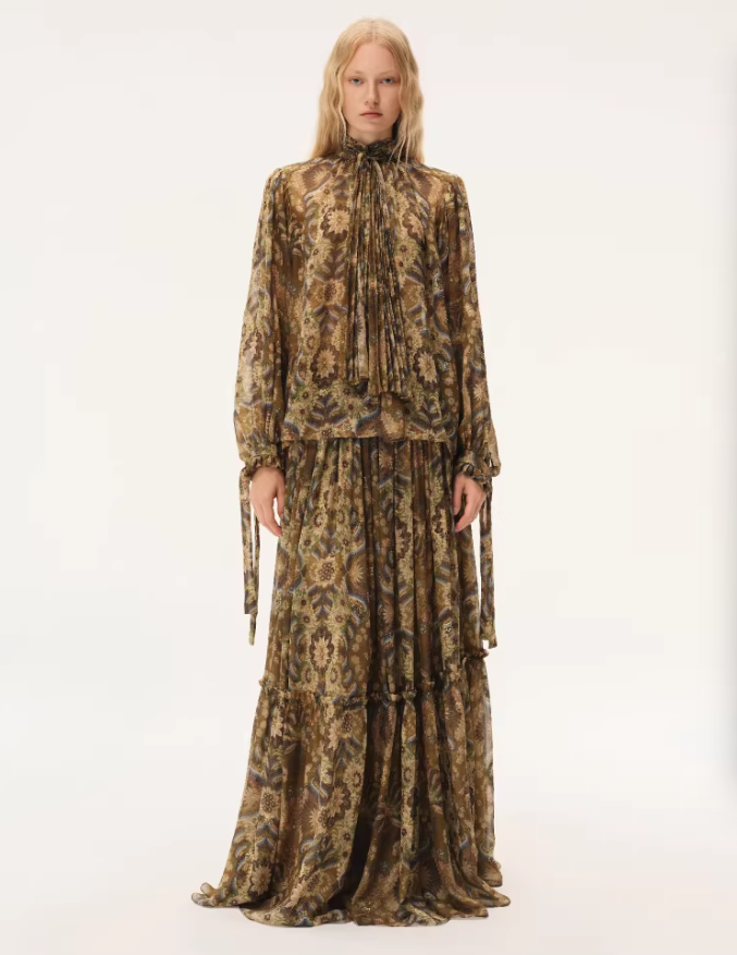 • Palm scroll-inspired print with layered tonal depth